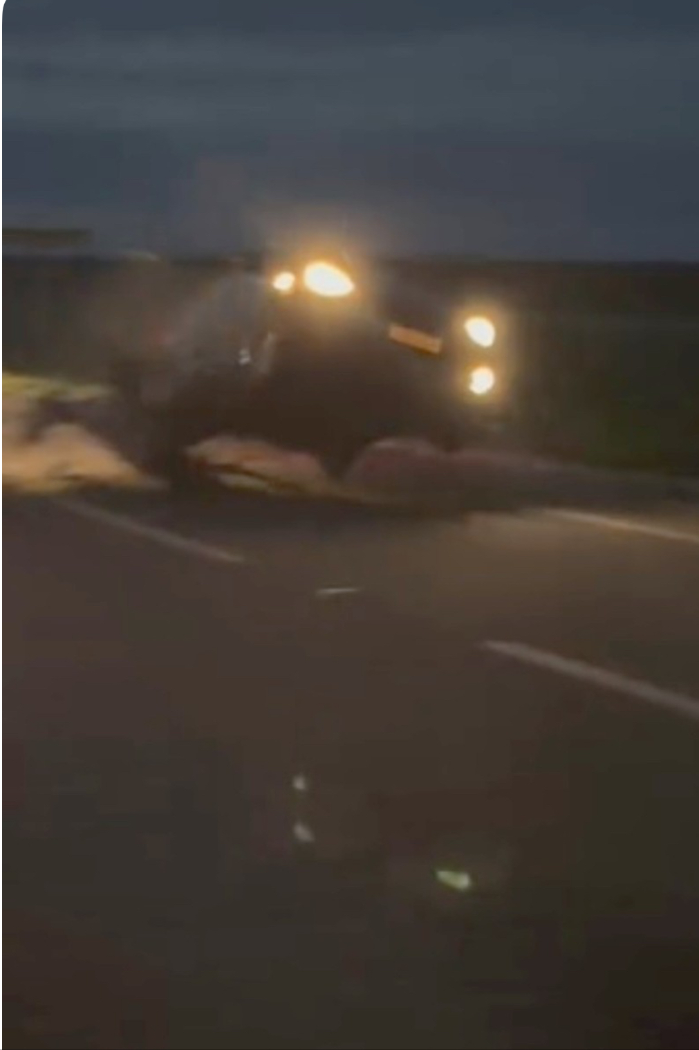 Mesmo com alertas feitos por motociclistas que tentavam sinalizar o perigo, um segundo veículo acabou atingindo o animal que estava caído na pista. Com a colisão, o carro quase tombou e parou alguns metros à frente.